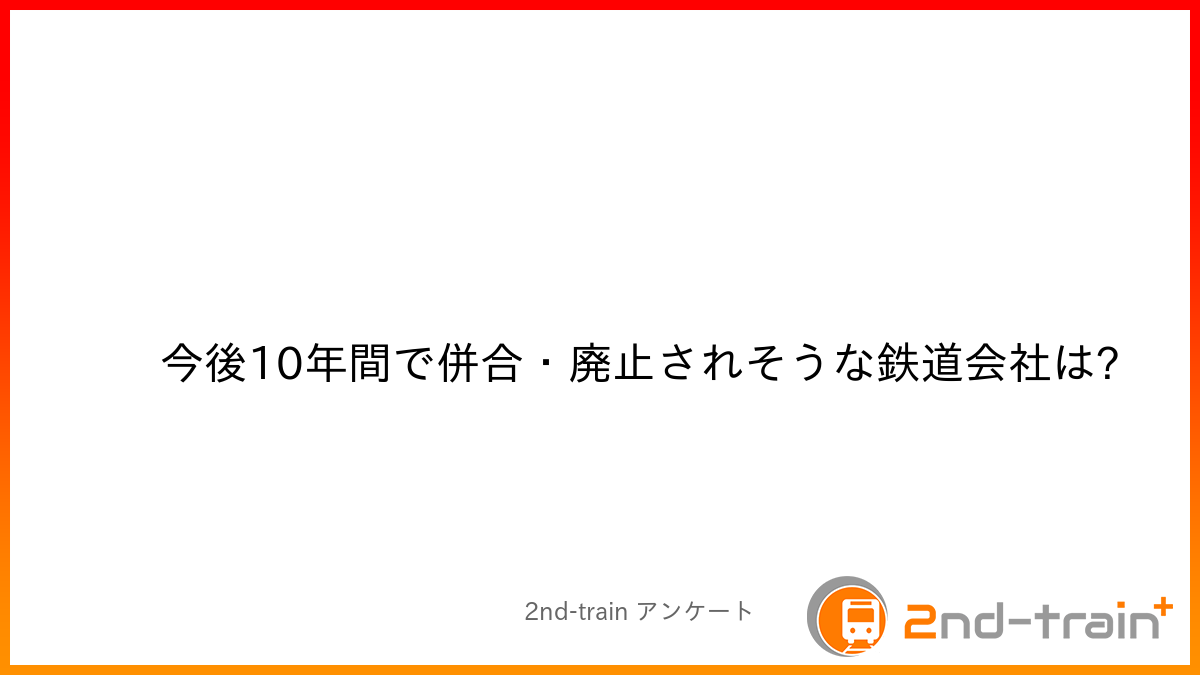 そこで今回のアンケートでは、皆さまが「今後10年間で併合されそうだ」と思う鉄道会社のタイプや事業者についてご意見を伺います。