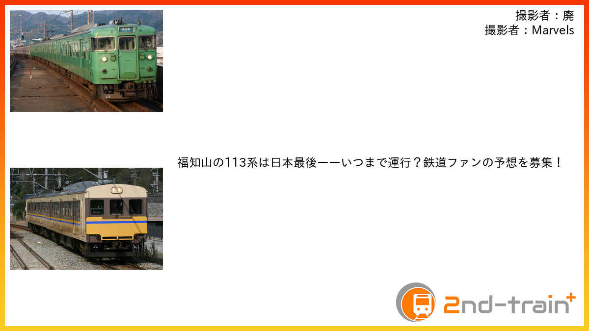 岡山地区での運用終了を受け、福知山の113系(5300番台)が“最後の113系”と話題になっています。2両5編成のみ残っていますが、鉄道ファンの皆さん、いつまで走ると予想しますか?